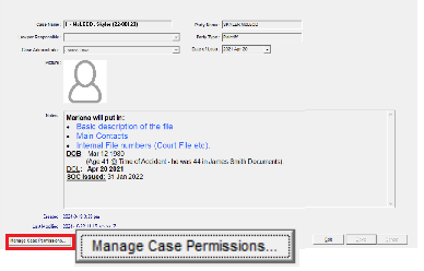 - Click the Manage Case Permissions button in the bottom-left corner of the Summary screen.