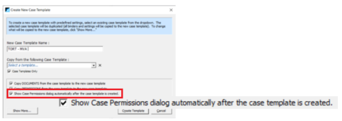 - if checked, the Case Permission dialog will open when creating a new Case based on the new template you are creating, allowing the creator to adjust Case Permissions while creating a new Case.