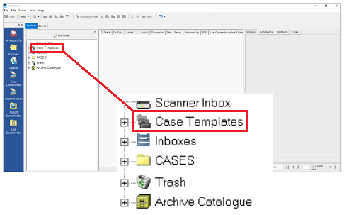 - Right-click the Case Templates folder in the Explorer panel of Primafact.