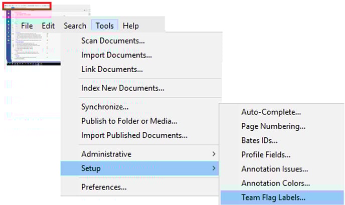 - In the main Primafact Toolbar, select Tools > Setup > Team Flag Labels.